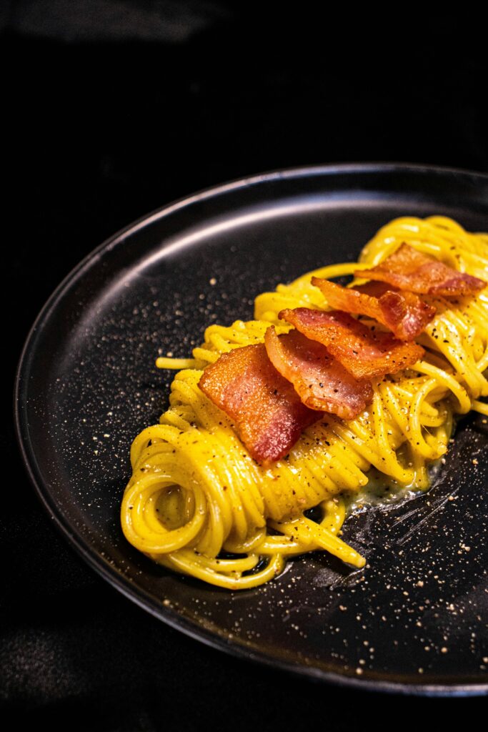 - Carbonara — made the authentic Roman way, with eggs, Pecorino, guanciale (cured pork cheek), and black pepper (no cream in sight!).